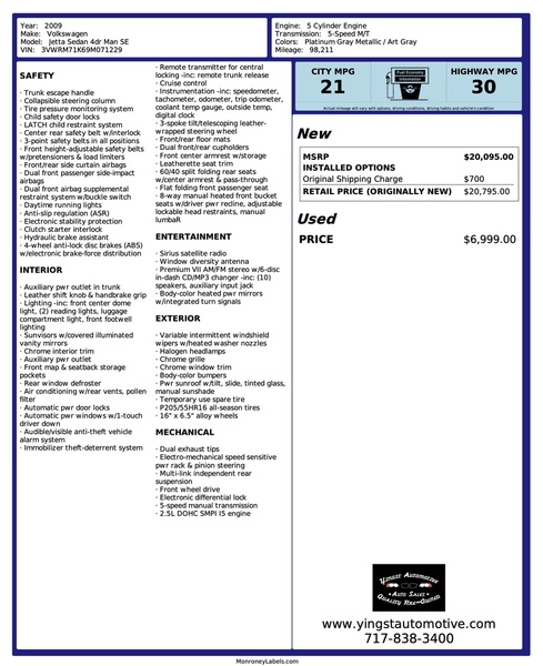Excellent Condition VW Jetta with a 5 Speed Manual Transmission. 2 Owners from New. The 2nd Owner purchased it Certified Pre-Owned in 2010. Well Maintained with 15 Service History Records.