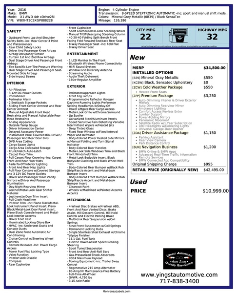 Excellent Condition All Wheel Drive BMW X1. Highly Optioned with Premium, Cold Weather, Driver Assistance & NAV Business Packages & Much More. Well Maintained with 36 Service Records. 10/26